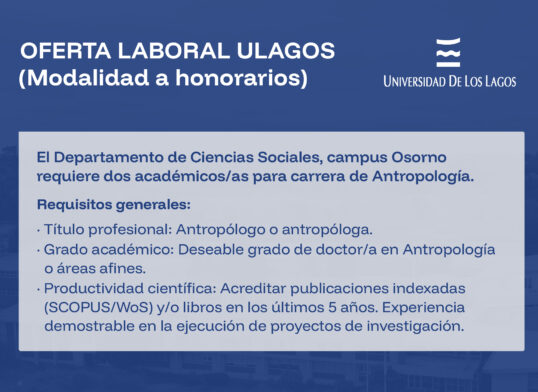Desde su fundación en 1992, el Departamento de Ciencias Sociales de la Universidad de Los Lagos se ha consolidado como un agente clave para el desarrollo del sur austral de Chile. Con una sólida oferta académica que incluye las carreras de Antropología, Derecho, Trabajo Social, Psicología y Pedagogía en Historia y Geografía, la unidad se enfoca en la formación de capital humano avanzado y la generación de conocimiento con pertinencia local. A través de una gestión moderna, la mejora continua de su infraestructura y una investigación vinculada estrechamente con el territorio, el departamento busca elevar los estándares de excelencia académica, promoviendo una transferencia de saberes que impacta directamente en la realidad social y cultural de las regiones de Osorno, Puerto Montt y Chiloé.